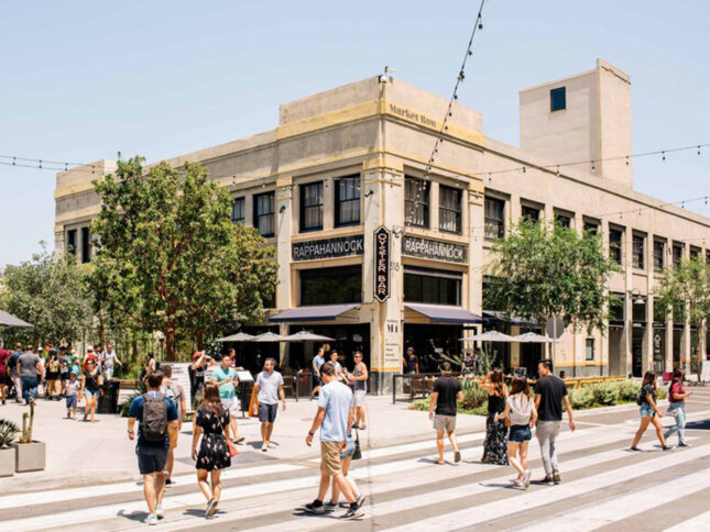 ROW DTLA in Los Angeles, California, represents a bold approach to retail Activity Centre planning as a commercial revitalisation of Downtown LA. Through an ambitious regeneration strategy that incorporated the site’s original warehouse and industrial buildings, constructed between 1917 and 1923, the development has transformed a 30-acre former Southern Pacific Railroad terminal complex into one of the city’s creative commercial districts.